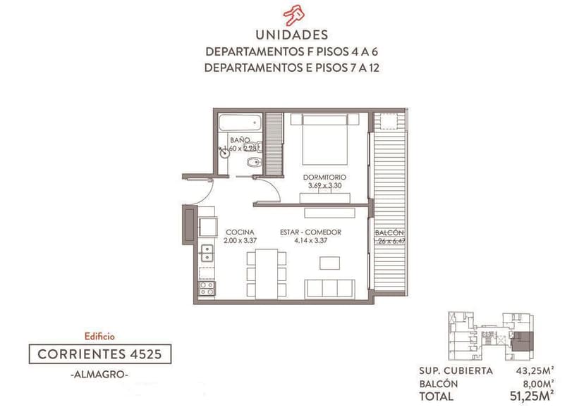 Apartamento · 2 ambientes · 1 dormitorios · 1 baños · 52 m²