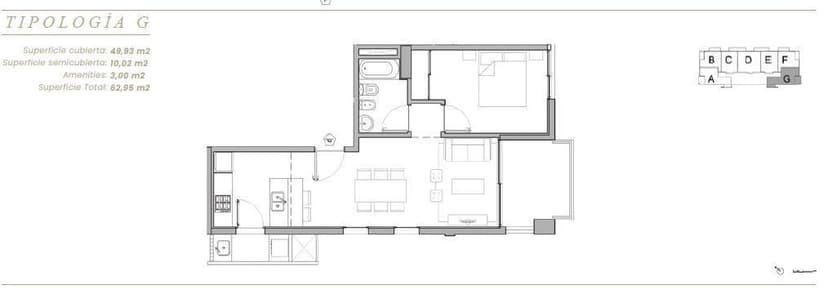 Apartamento · 2 ambientes · 1 dormitorios · 1 baños · 60 m²