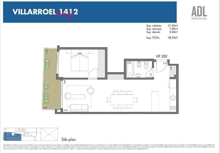 Apartamento · 2 ambientes · 1 dormitorios · 1 baños · 59 m²