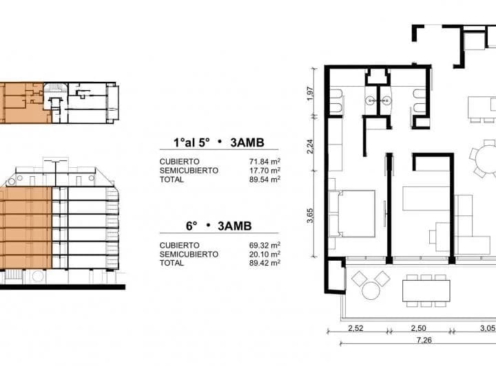 Apartamento · 3 ambientes · 2 dormitorios · 2 baños · 89 m²